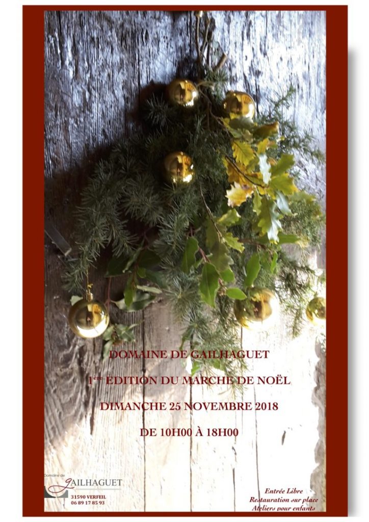 Je vous propose de venir faire vos achats de Noel en famille dans un cadre somptueux: le domaine de GAILHAGUET à Verfeil le dimanche 25 Novembre de 10h à 18h.