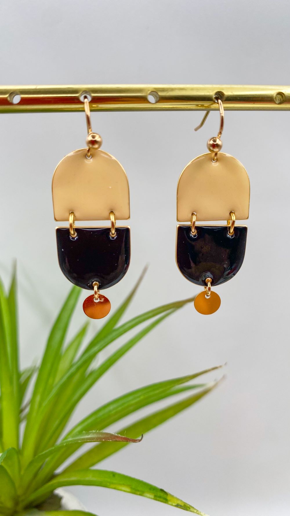 Élégance Monochrome : Boucles d’Oreilles Plaqué Or avec résine de couleur Noire et Blanche