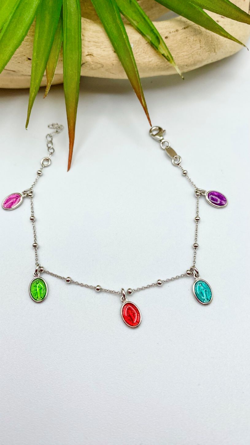 Bracelet argent et médailles miraculeuses colorées | Vierge Marie