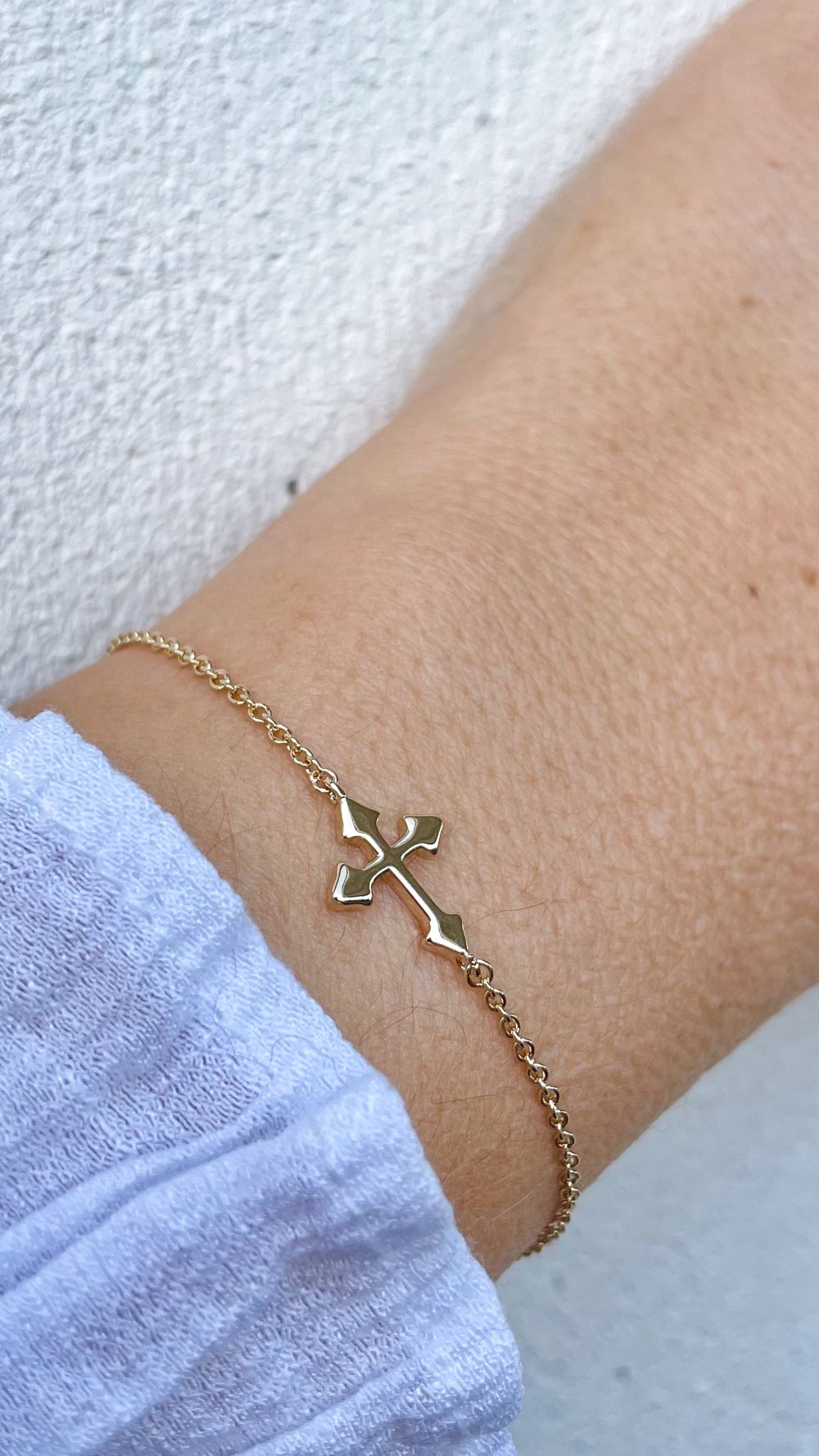 Le bracelet croix en plaqué or est un cadeau significatif pour un être cher, que ce soit pour une première communion, un baptême, une confirmation, un anniversaire ou tout autre moment important de la vie chrétienne. Ce bijou chrétien moderne et élégant fera plaisir à ceux qui souhaitent porter leur foi avec discrétion et sophistication. En offrant ce bracelet religieux, vous transmettez un message de foi et de soutien spirituel, qui sera porté avec tendresse et gratitude.