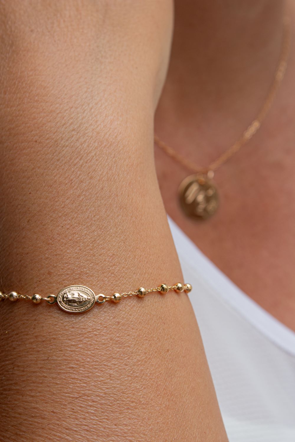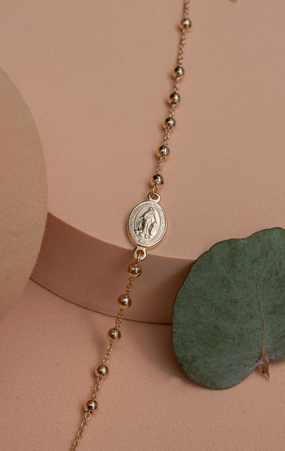 Ce bracelet dizainier miraculeuse est entièrement en plaqué or, c’est un bracelet indispensable à la vie d’un chrétien et vous accompagnera dans toutes vos prières. Priez le chapelet ou le rosaire grâce au bracelet dizainier en Plaqué Or | Notre Dame du Rosaire.