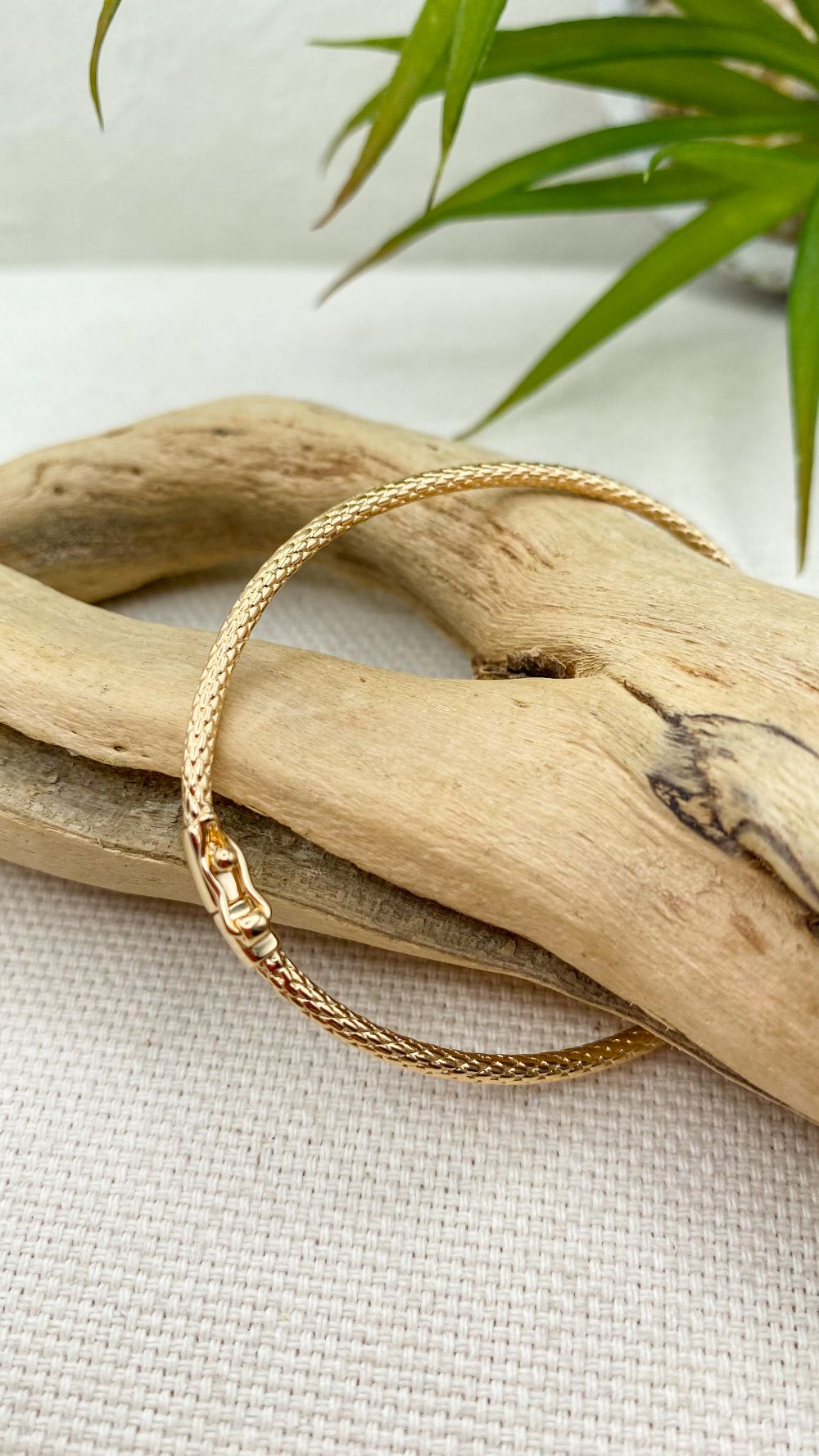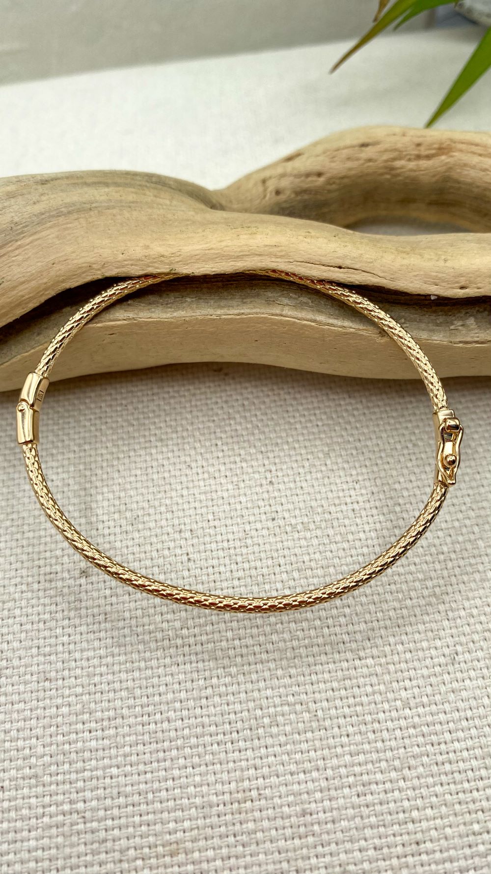 Bracelet jonc ovale motif écaille serpent en plaqué or | Les Glénans