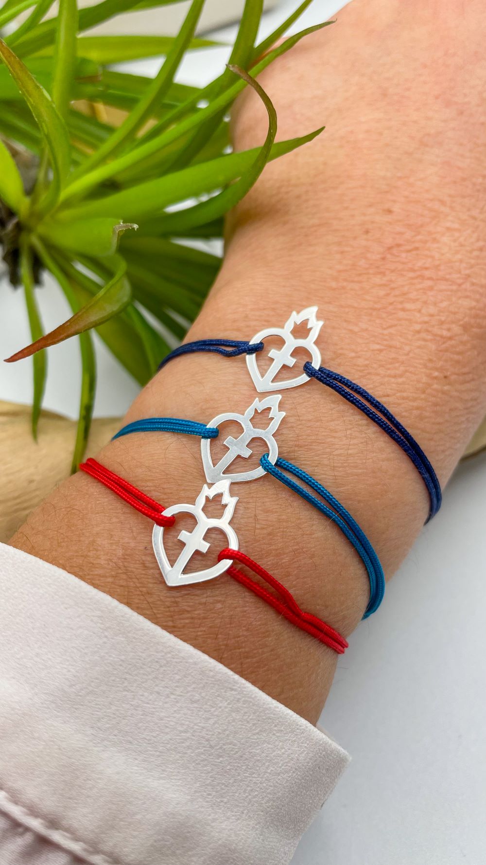 Au cœur de ce bracelet se trouve un sacré cœur de Jésus évidé, à vous de personnaliser votre bracelet religieux en choisissant la couleur du lien. Au choix un fil turquoise, bleu marine ou rouge.
