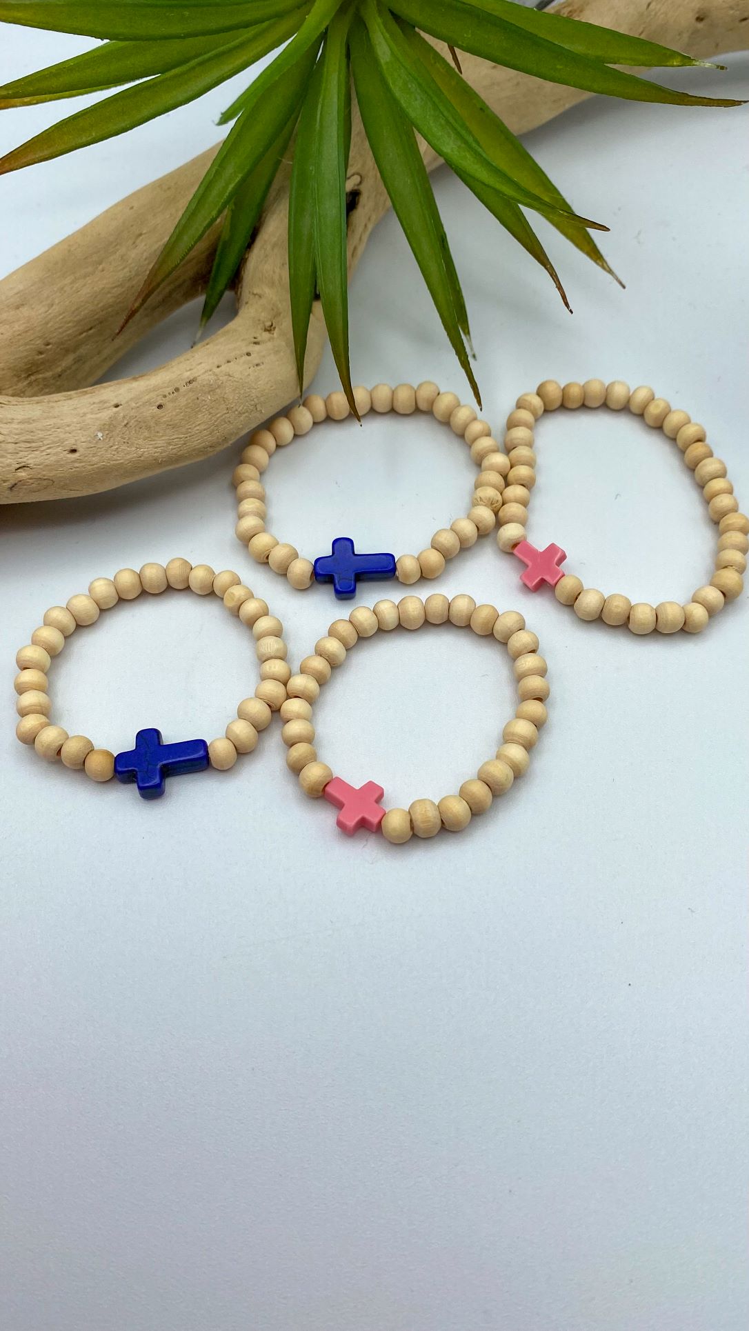 Bracelet sur fil élastique perle de bois naturelle et croix en pierre | Ressucito