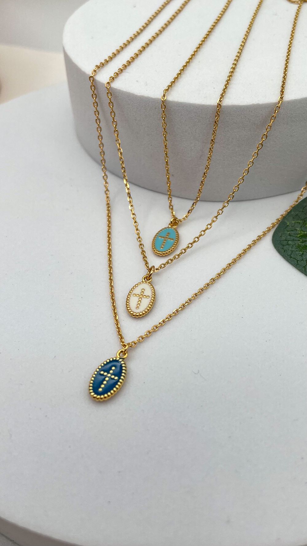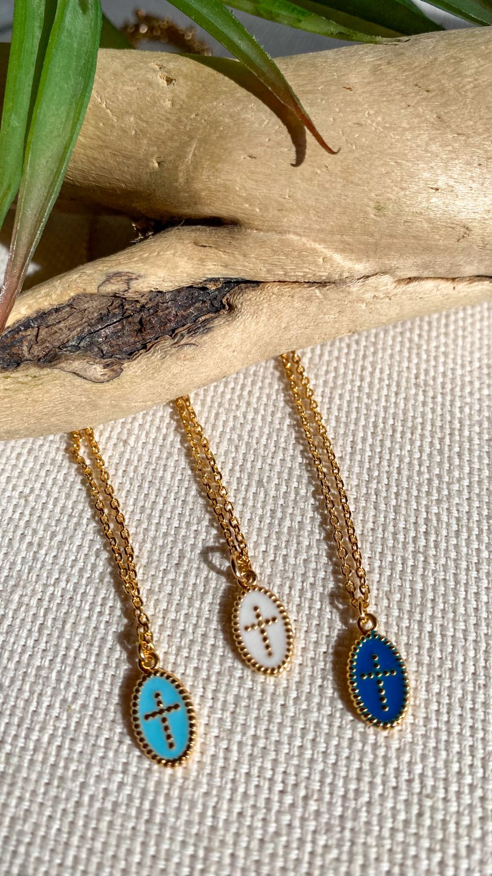 Ce collier est ajustable de 37 cm à 40 cm. Le Collier avec pendant ovale perlé croix émail coloré en plaqué or | Christi conviendra ainsi à toutes les femmes, ados et petite fille .