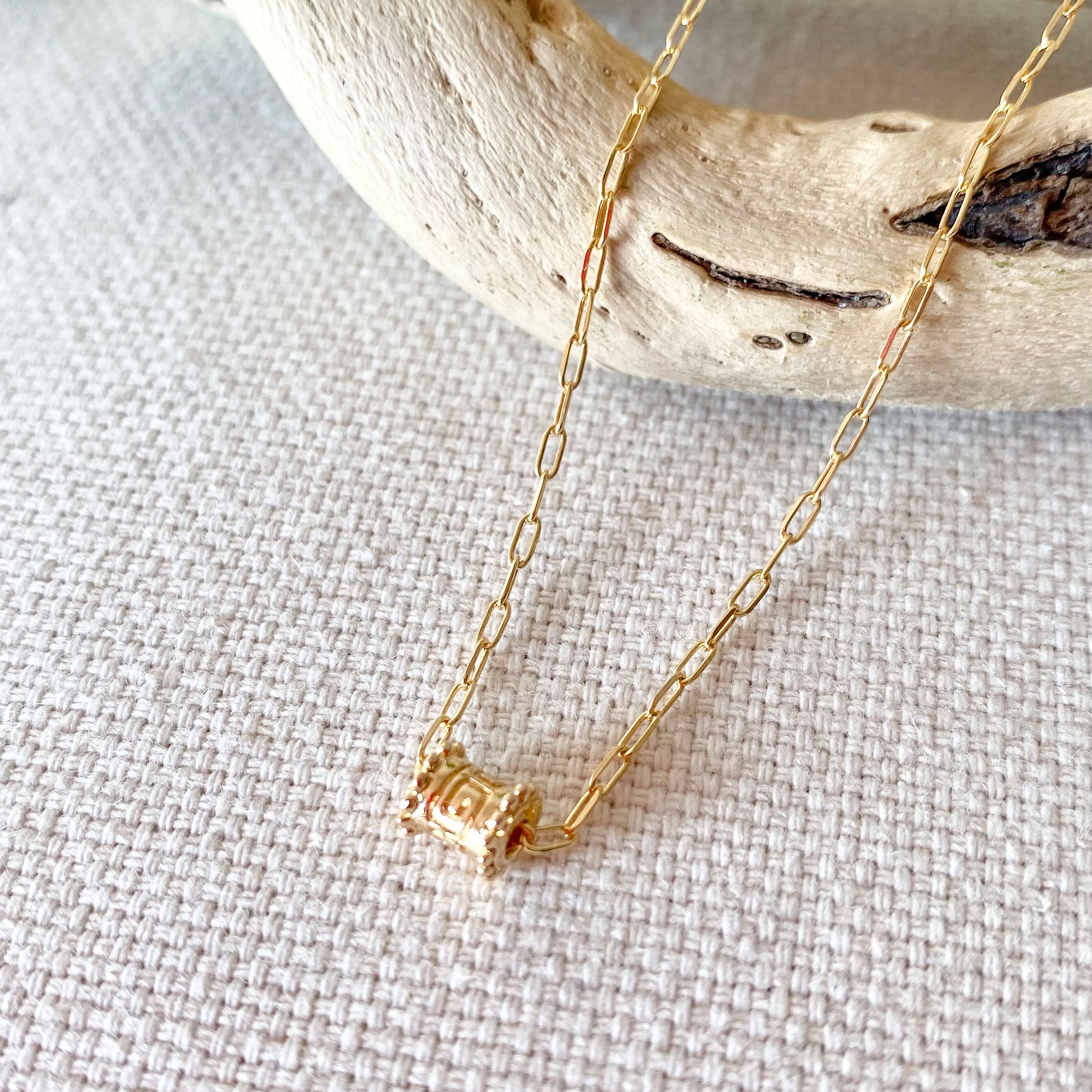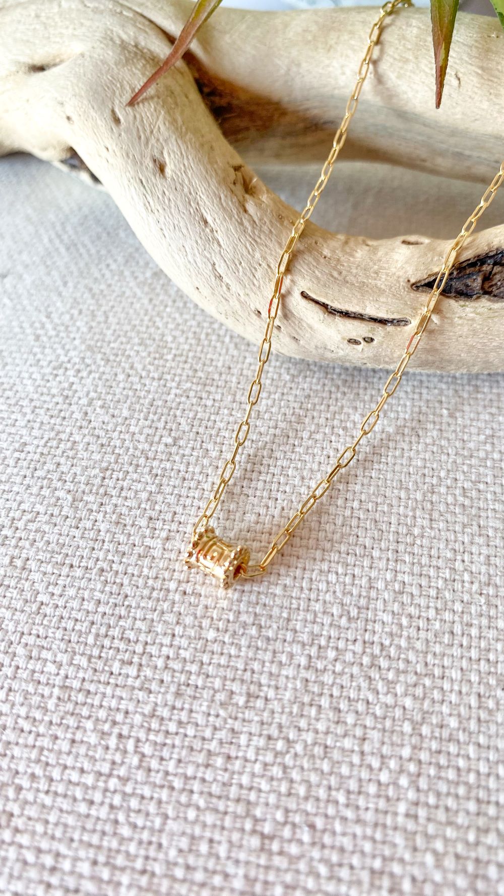 Découvrez le collier Collier bohème pendentif tube balinais plaqué or | Fidji , une création exquise fusionnant l’élégance intemporelle du plaqué or avec l’artisanat raffiné d’une chaîne maille forçat allongée et d’un tube balinais. Chaque élément de ce bijou raconte une histoire, capturant l’essence du style intemporel et de l’héritage culturel.