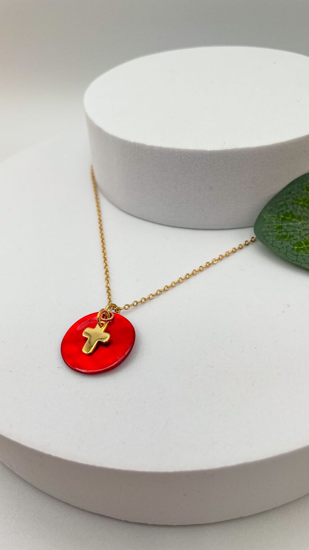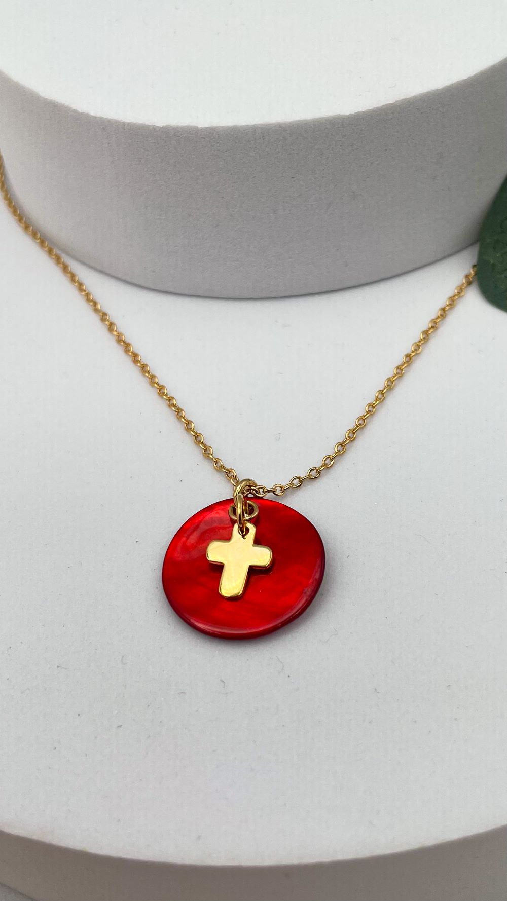 Pour ce bijou religieux original à vous de choisir la couleur de ce disque en nacre: un rouge vif ou un bleu pétrole. Ces pastilles en nacre colorés et aux reflets irisés font de ce collier catho un véritable bijou unique de qualité irréprochable !