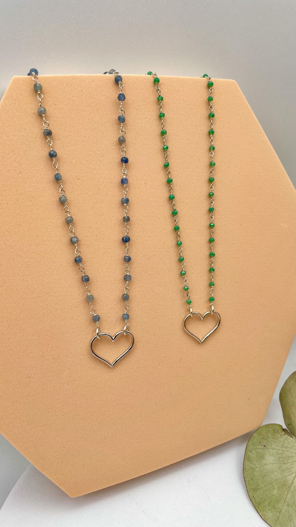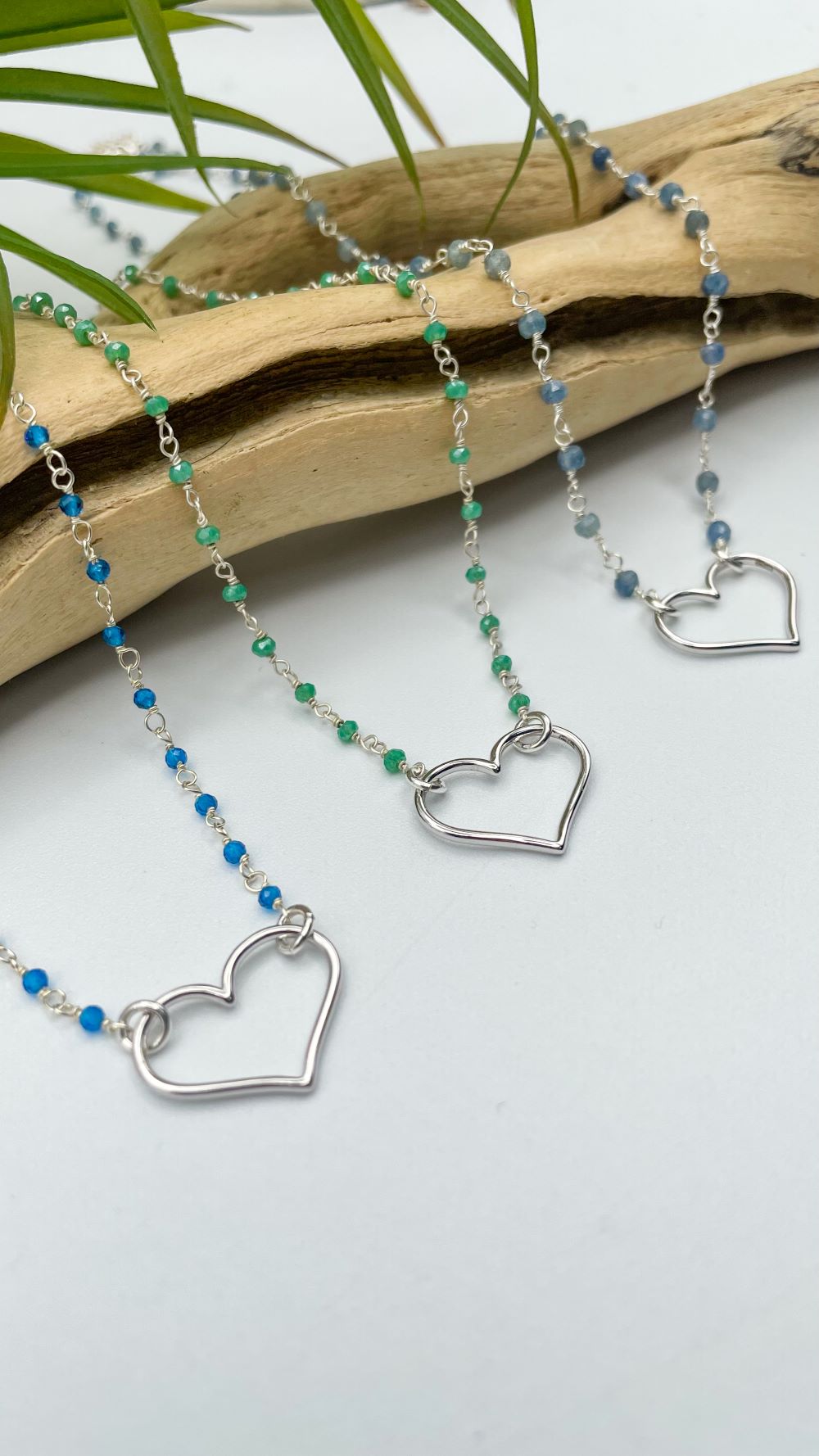 Le collier en argent est orné de pierre au choix ; bleues pétroles, de calcédoine ou d’onyx vert. A vous de choisir la couleur du collier cœur chaine perlée en fonction de la personnalité de la personne à qui vous comptez offrir ce collier rempli d’amour. Ornementée de pierres gemmes bleues ou vertes, la chaîne complète le collier cœur avec une touche de couleur vive et de brillance éclatante. Ces pierres, choisies avec soin, ajoutent une dimension supplémentaire d’élégance et de raffinement à votre collier.
