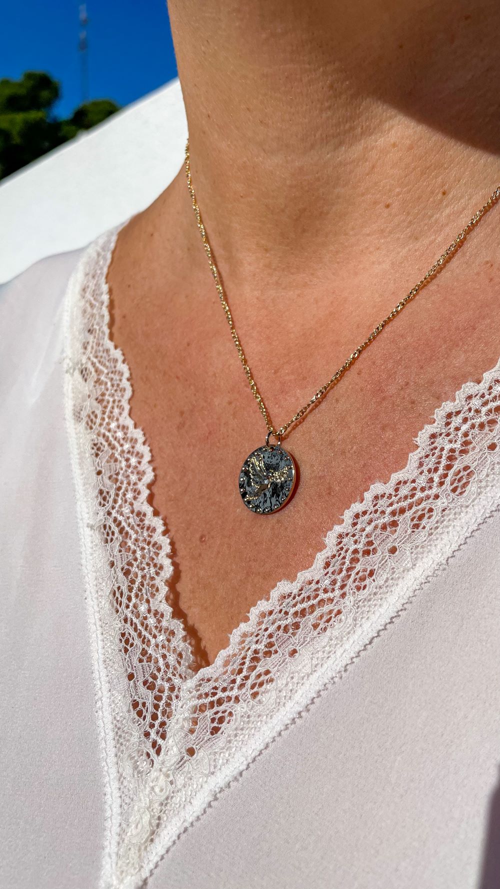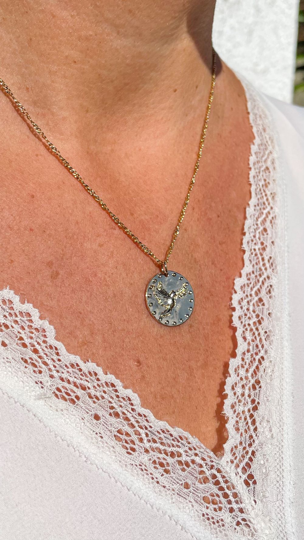 A vous de personnaliser ce collier en faisant graver au dos de la médaille colombe de la paix un message: une date, une parole , des prénoms…Pas d’idée ? je vous aiderai ! contactez- moi : laurence@gemmesetvous.com
