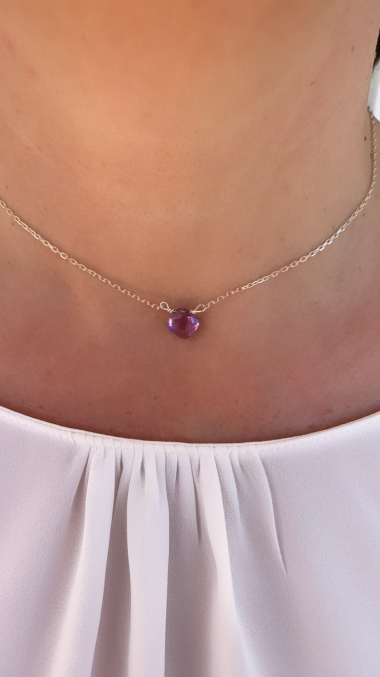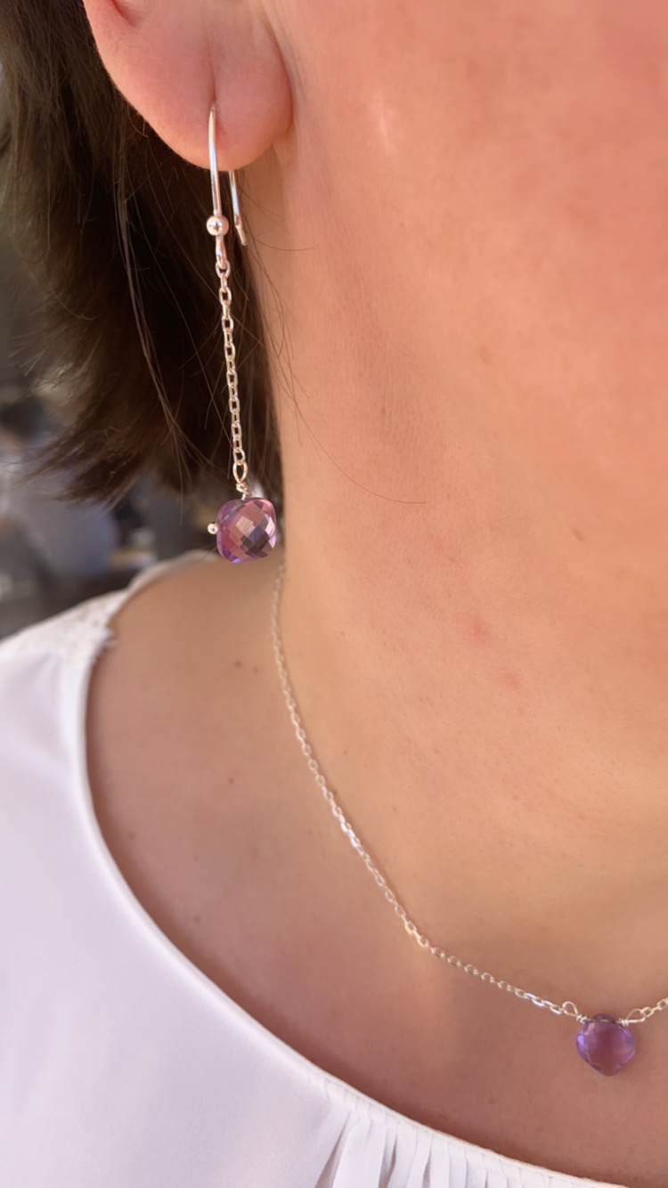 Les pierres sont facettées ce qui donne de l’éclat à votre collier: la lumière se reflète dedans ! La couleur violette de l’améthyste contraste harmonieusement avec l’argent.