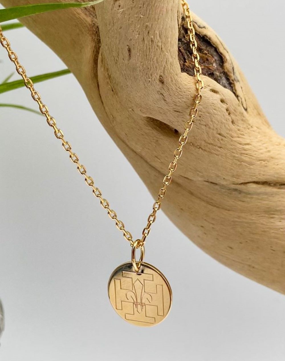 Cette médaille scout est une création exclusive de la créatrice de Gemmes…& Vous. C’est un modèle de médaille original: une médaille catho « branchée » de part ses lignes pures.