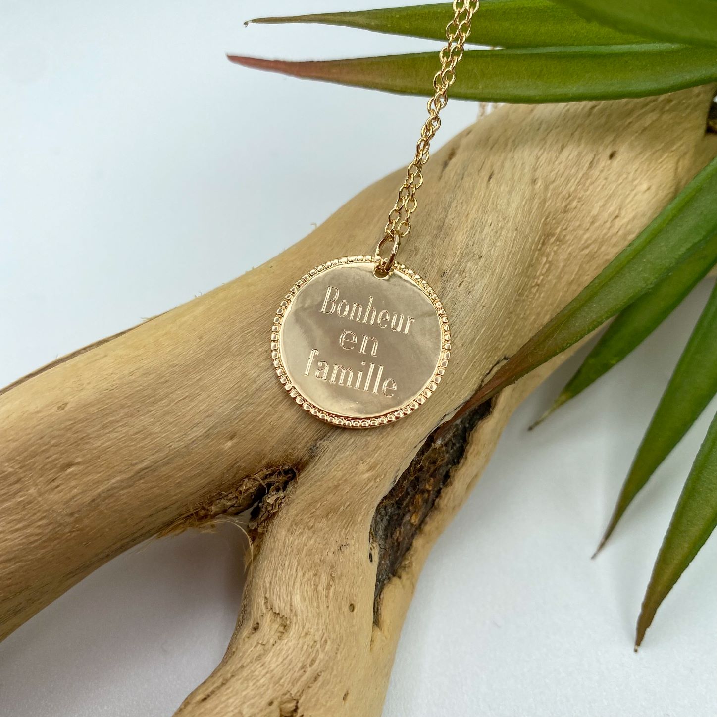 Collier médaille gravée Bonheur en famille en Plaqué Or | Bora Bora