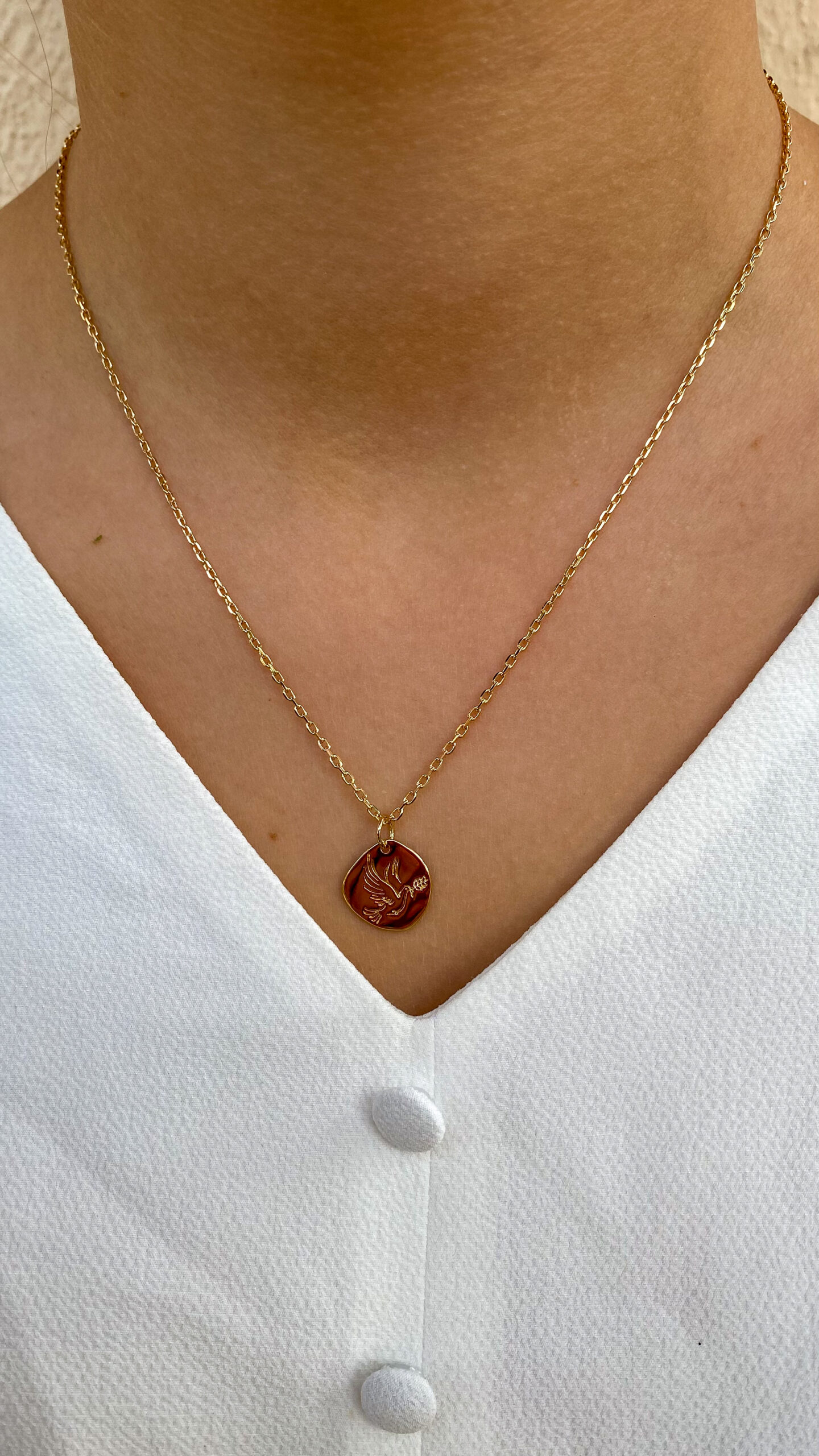 Collier Médaille originale Colombe de la paix en Plaqué Or | Colombe de la Paix