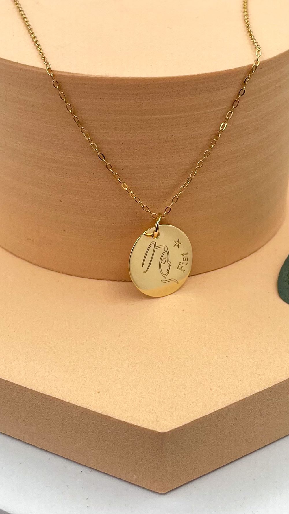 Collier médaille Vierge Marie Fiat Argent ou Plaqué Or | Fiat