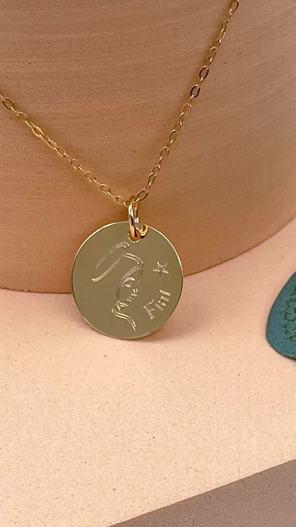 Cette médaille a également l’avantage d’être personnalisable par une fine gravure, à la pointe diamant: garantie d’ une création unique, qui pourra être transmise aux futures générations. Vous marquerez ce lien précieux qui vous unit grâce à ce cadeau intemporel. La gravure à la pointe dimant est un gage de qualité et de longévité dans le temps.